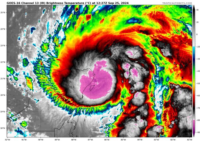 De acuerdo con el Insmet, en las próximas horas el huracán continuará desplazándose por el canal de Yucatán y el sudeste del Golfo de México, inclinando su trayectoria hacia el norte y norte-nordeste al final del día e incrementará ligeramente su velocidad de traslación, ganando en intensidad.