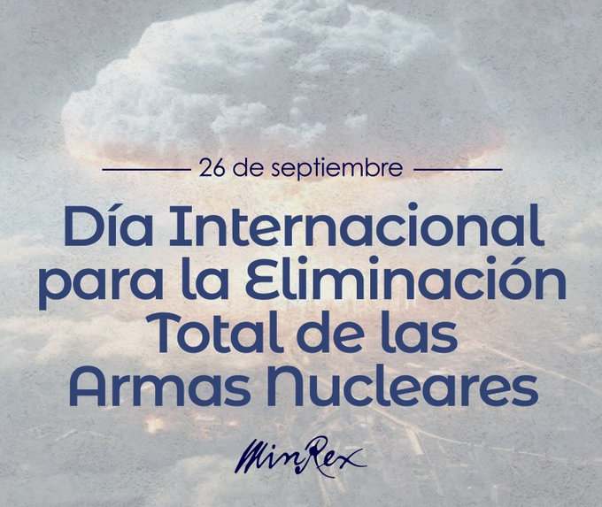 La Cancillería reafirmó la postura cubana a propósito del Día Internacional para la Eliminación Total de las Armas Nucleares, que se celebra cada 26 de septiembre y fue establecido por la Asamblea General de las Naciones Unidas.