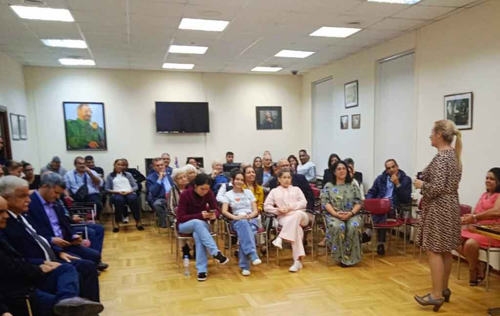 Un momento emotivo de la actividad fue el video mensaje de felicitación enviado desde la provincia más oriental de la nación caribeña al colectivo de la misión estatal cubana en Moscú por el Héroe de la República de Cuba y Coordinador nacional de los CDR, Gerardo Hernández.