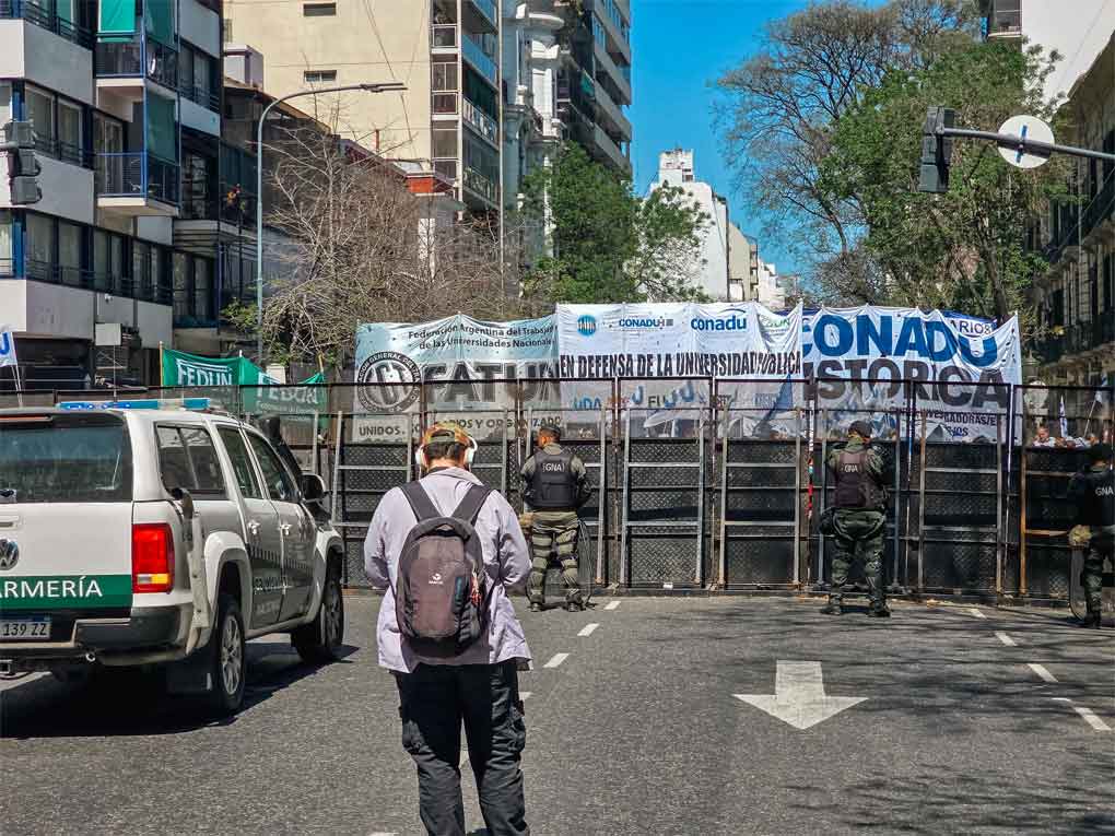 Bullrich, una vez más, montó un operativo desproporcionado y con vallas para impedir el desarrollo de una protesta pacífica en defensa de la universidad pública. Además, la Gendarmería está parando los autobuses que vienen desde el interior de la provincia de Buenos Aires y el conurbano, señaló dicho organismo.