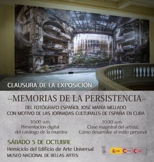 La actividad, programada para las 10:00 hora local, es parte del cierre la muestra de igual nombre que el Mellado expone hasta este mes en el habanero Edificio de Arte Universal, perteneciente al Museo, donde compartirá sus experiencias en clase magistral, según anunció en Facebook la institución.