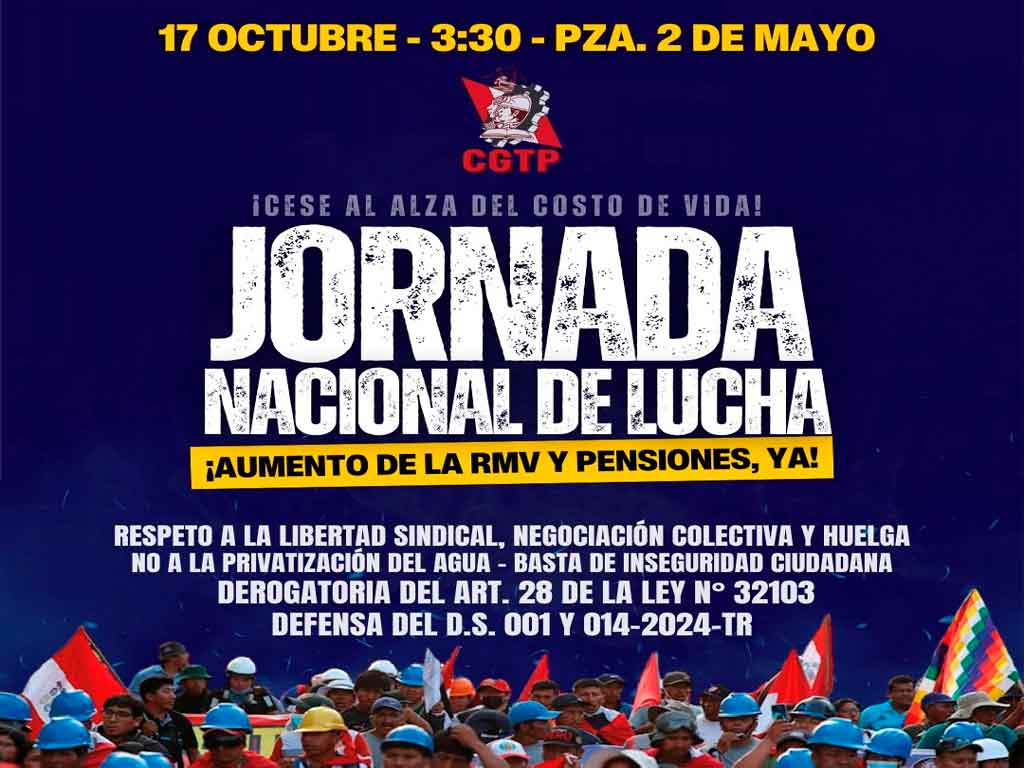 La protesta será el 17 de octubre y demandará un incremento salarial digno, para evitar que las familias peruanas sigan viviendo en situación de precariedad económica, declaró a Prensa Latina el secretario general adjunto de la central obrera, Gustavo Minaya.