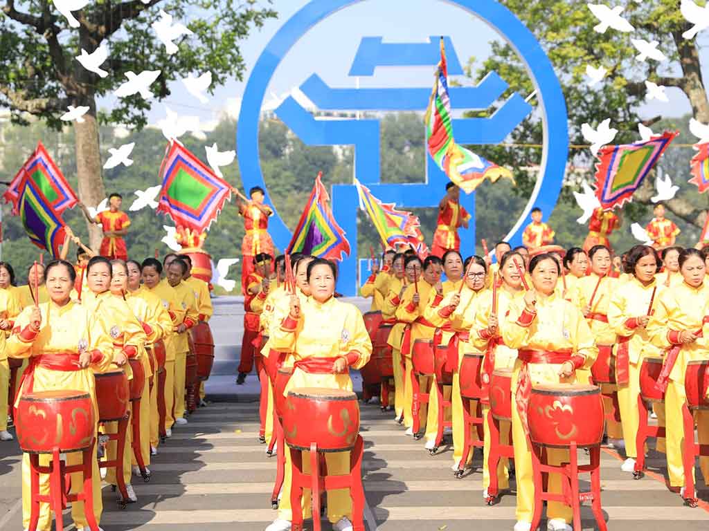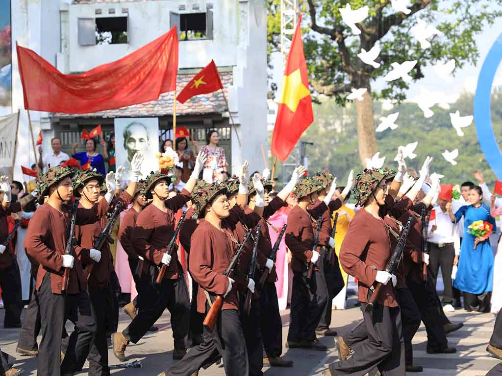 El festejo, en cuyo desfile y espectáculo artístico participaron nueve mil personas, estuvo dedicado al 70 aniversario de la liberación de Hanoi y loos cinco lustros desde su proclamación por la Unesco como Ciudad por la Paz.