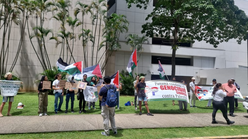 Carteles con lemas como “Todos somos Palestina libre” o «Panamá condena el genocidio sionista», signaron la manifestación que además repudió que la actual administración de José Raúl Mulino, se ha subordinado a los intereses expansionistas del mandatario israelí Benjamín Netanyahu, a quien catalogaron como gestor de la agresión y un asesino.