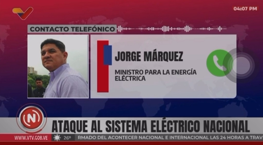 El ministro para la Energía Eléctrica, Jorge Márquez, denunció en contacto telefónico con Venezolana de Televisión que la agresión tuvo por objetivo al sistema de transmisión.