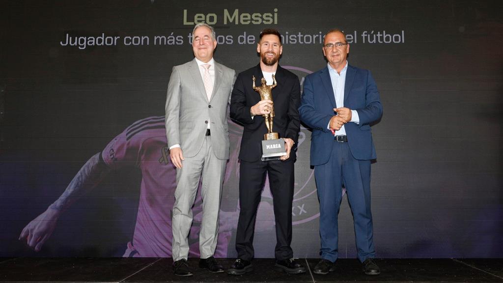 Juan Ignacio Gallardo, director de Marca, intercambió una breve charla con el homenajeado en el escenario de la ceremonia en el Chase Stadium de Miami, en la cual Messi aseguró sentirse muy feliz y honrado, y que encontrará un lugarcito en su vitrina de trofeos para ubicar este recibido ahora.