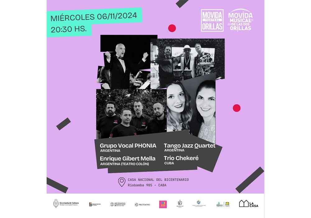 En el evento también tocará el grupo Phonia, el Tango Jazz Quartet, Vocal Buenos Aires (Argentina) y Parientes (Uruguay).
