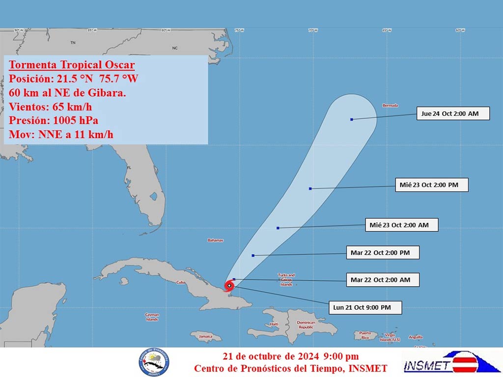 “Oscar inclinó su rumbo hacia el norte-nordeste, manteniendo una velocidad de traslación de 11 kilómetros por hora”, precisó el Insmet.