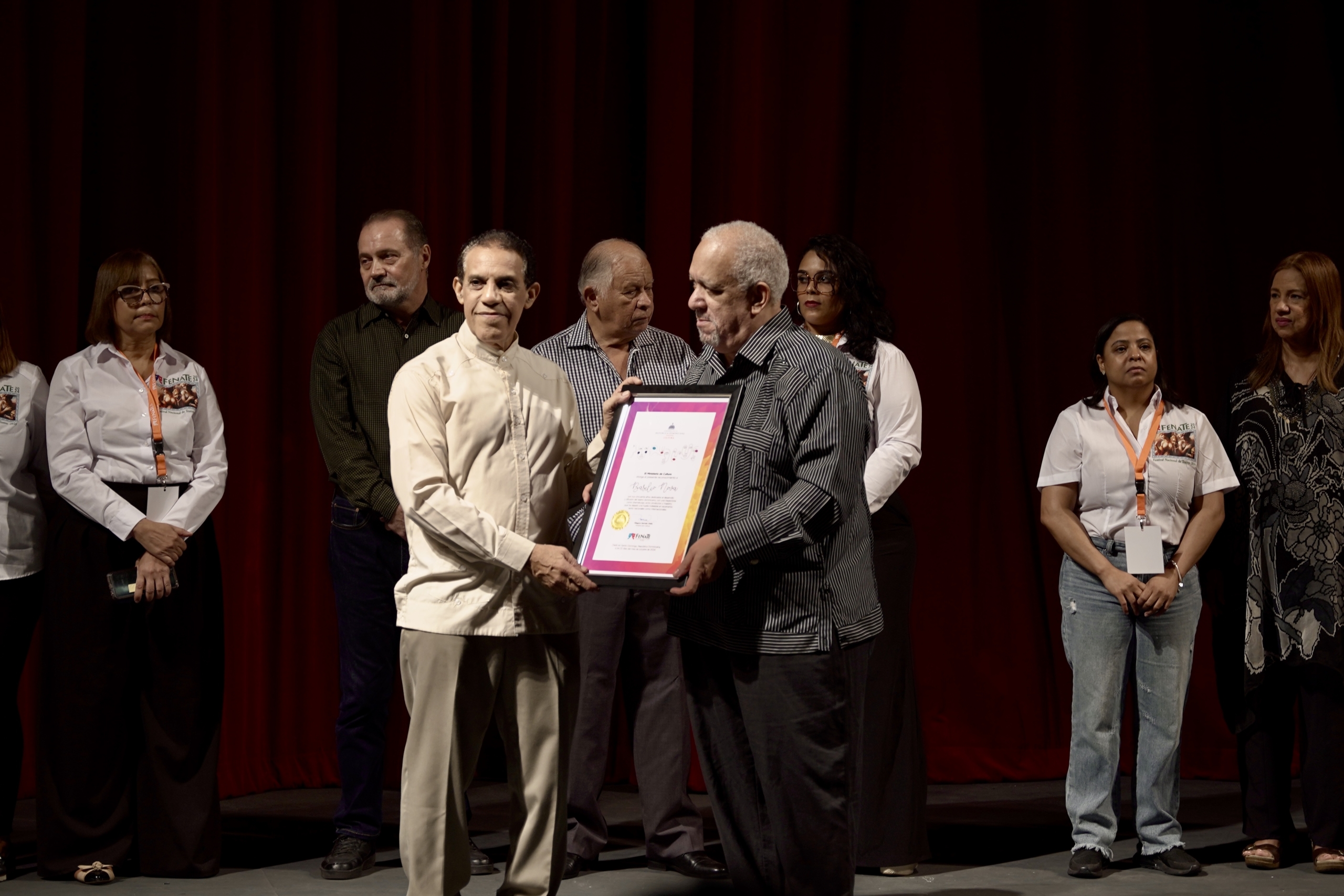 El homenaje tuvo lugar en la sala Máximo Avilés Blonda, del Palacio de Bellas Artes, luego de la puesta en escena de la obra “Cantares de cigarra”, a cargo del Teatro Cúcara Mácara y bajo la dirección de Elvira Taveras.
