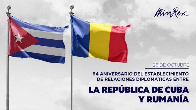 La Habana, 26 oct (Prensa Latina) El gobierno de Cuba ratificó la voluntad de fortalecer vínculos con Rumanía, a propósito de cumplirse hoy el aniversario 64 del establecimiento de las relaciones diplomáticas entre ambas naciones.