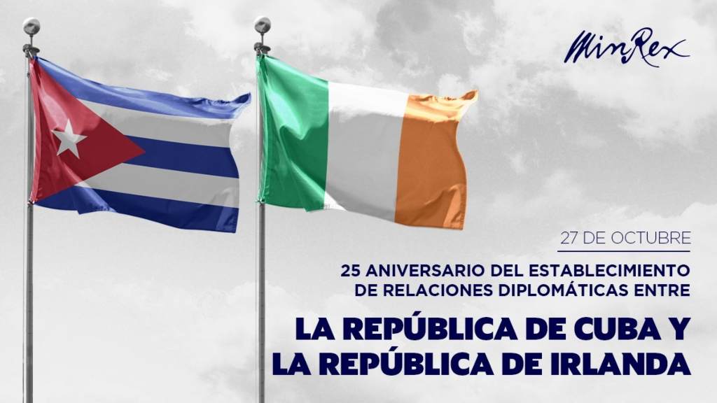 «Celebran Cuba e Irlanda el aniversario 25 del establecimiento de sus relaciones diplomáticas», dice el texto divulgado en la red social.