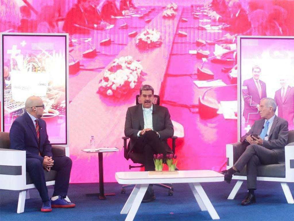 Maduro afirmó que su Gobierno define muy claramente su política internacional como antiimperialista, anticolonialista, del Sur Global, que busca la construcción de un mundo sin hegemonismos, y por eso les pareció natural que fueran invitados por el presidente ruso, Vladimir Putin, a la XVI Cumbre del grupo.