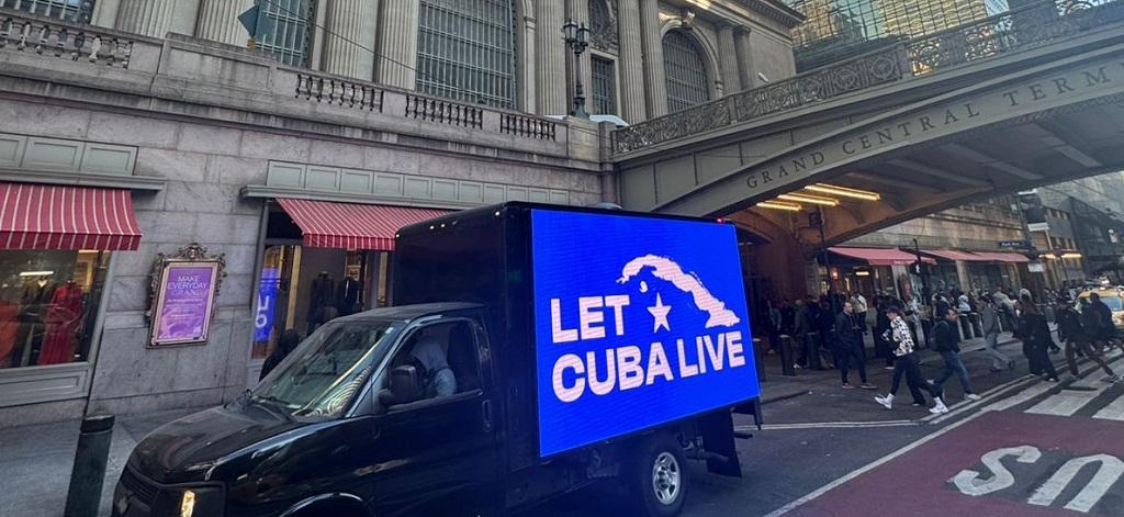 Con ese objetivo, un camión publicitario viaja por la Gran Manzana con imágenes que exigen el levantamiento de las medidas coercitivas.