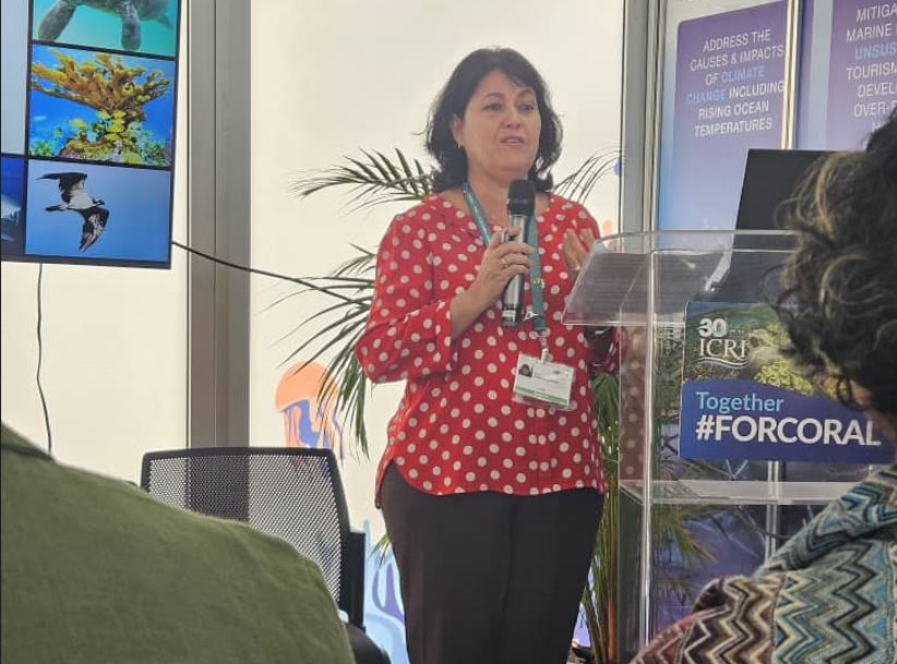 La viceministra refirió que Cuba, por ejemplo, con sus manglares, sitios de congregación de peces para desove, pastos marinos y arrecifes de coral, brinda servicios ambientales importantes para la región y contribuyen con ella al equilibrio ecológico del Caribe.
