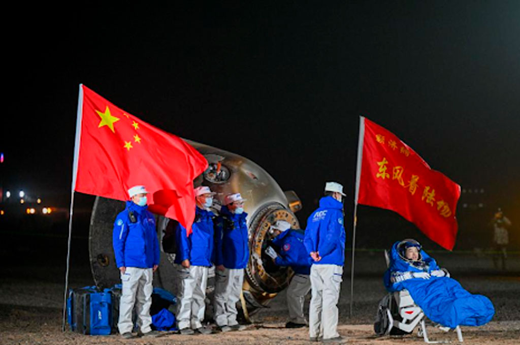 La cápsula de regreso con Ye Guangfu, Li Cong y Li Guangsu a bordo, aterrizó en el sitio previsto de Dongfeng en la Región Autónoma de Mongolia Interior, en el norte del país.