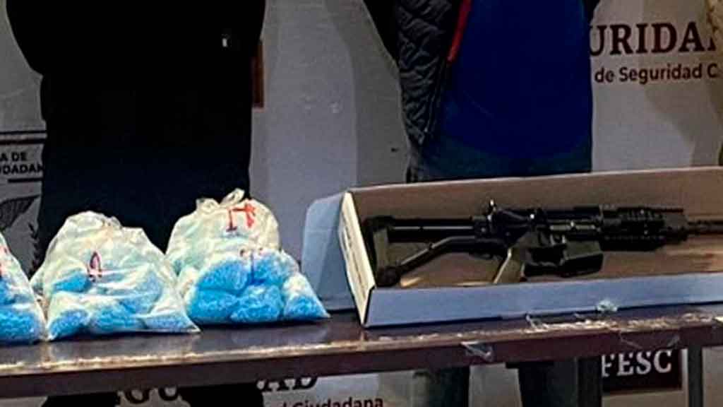 De acuerdo con un comunicado de la Secretaría de la Defensa Nacional, personal militar y de la Fuerza Estatal de Seguridad Ciudadana localizaron en el interior de un vehículo aproximadamente 326 mil 55 pastillas de droga sintética, un arma larga, dos cargadores y 57 cartuchos.