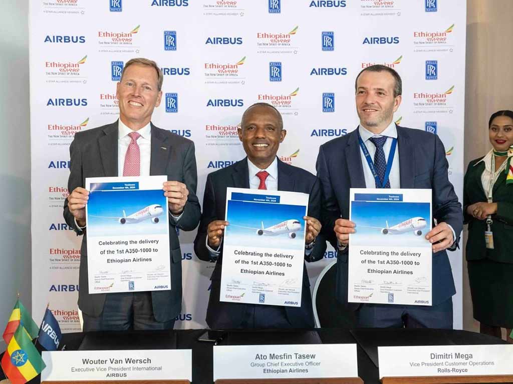 La variante A350-1000, una versión más grande y potente de la familia A350, puede acomodar hasta 395 pasajeros en clases ejecutiva y económica, con una sección ejecutiva más extensa que las configuraciones de fuselaje ancho existentes en Etiopía.