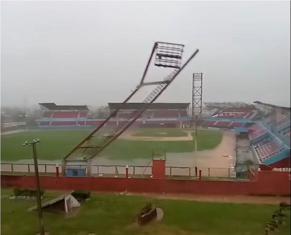Hasta ahora, pudo documentarse el deterioro causado en el estadio 26 de Julio, que perdió gran parte del techo y una torre para el alumbrado, la cual ya estaba inhabilitada.
