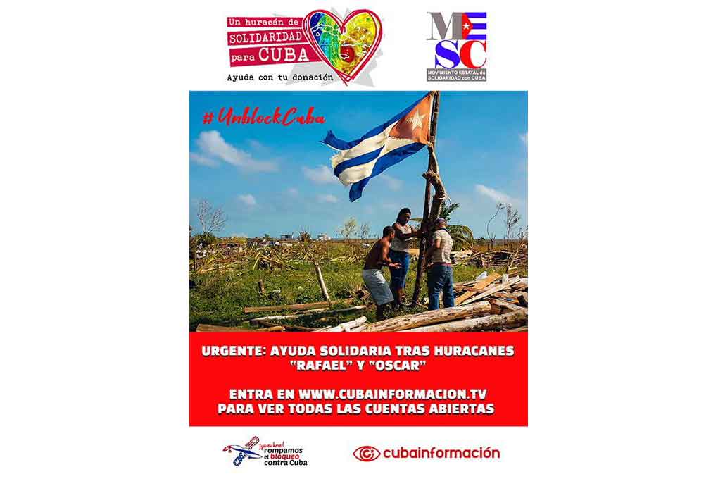 Asimismo, este viernes las asociaciones Euskadi-Cuba, Sierra Maestra-Euskadi y Desembarco del Granma se sumaron a las muestras de solidaridad a raíz del paso del huracán Rafael.