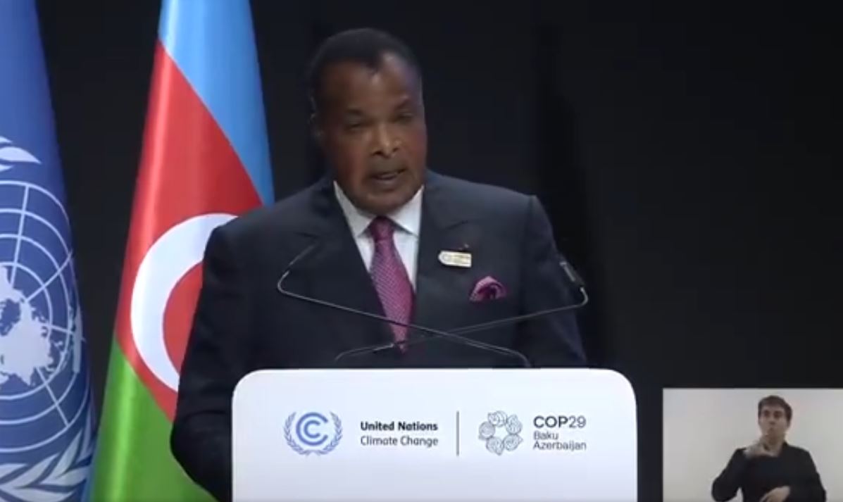 El mandatario congoleño, en la 29 Conferencia de las Partes de la Convención Marco de las Naciones Unidas sobre el Cambio Climático, que se celebra en Bakú, Azerbaiyán, junto a otros países africanos propuso al cónclave una iniciativa para que el capital natural de los Estados sea incluido en el cálculo de su producto interno bruto.