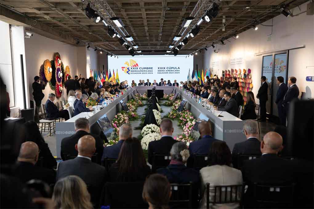 «Estamos viviendo momentos duros para Iberoamérica, y tenemos la responsabilidad, como jefes de Estado, de sacar adelante la región», manifestó el mandatario ecuatoriano en el inicio de la sesión plenaria de este viernes en el Museo Pumapungo, de la ciudad de Cuenca.