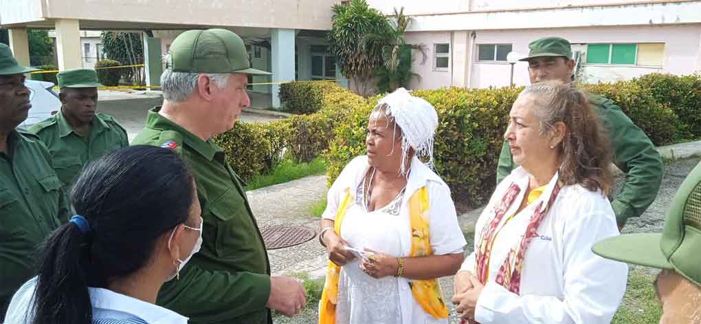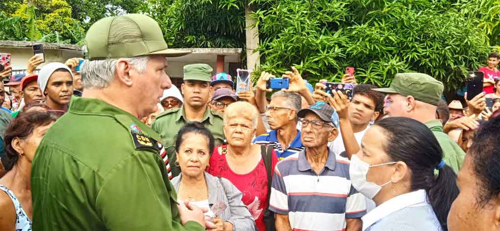 Díaz-Canel dialogó con la población en el Consejo Popular Sevilla, se interesó por el ánimo y el estado sicológico de las personas, y reconoció la organización y disciplina con la que enfrentaron este suceso.