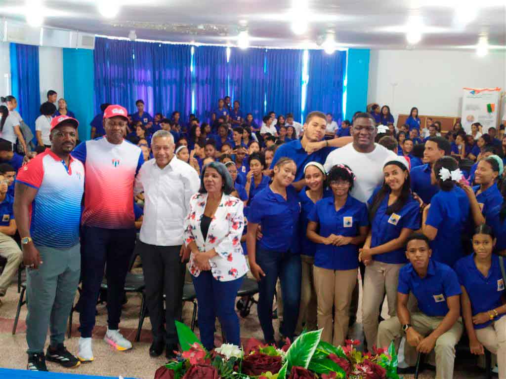 En la ocasión, la gloria del deporte intercambió con cientos de educandos, con Cristina Arias, directora de la institución, y con parte del claustro de profesores.