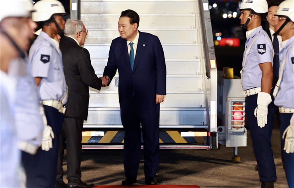 La oficina presidencial detalló en Seúl que Yoon arribó al gigante sudamericano desde Lima, Perú, donde participó este fin de semana en la cumbre del Foro de Cooperación Económica Asia-Pacífico (APEC).