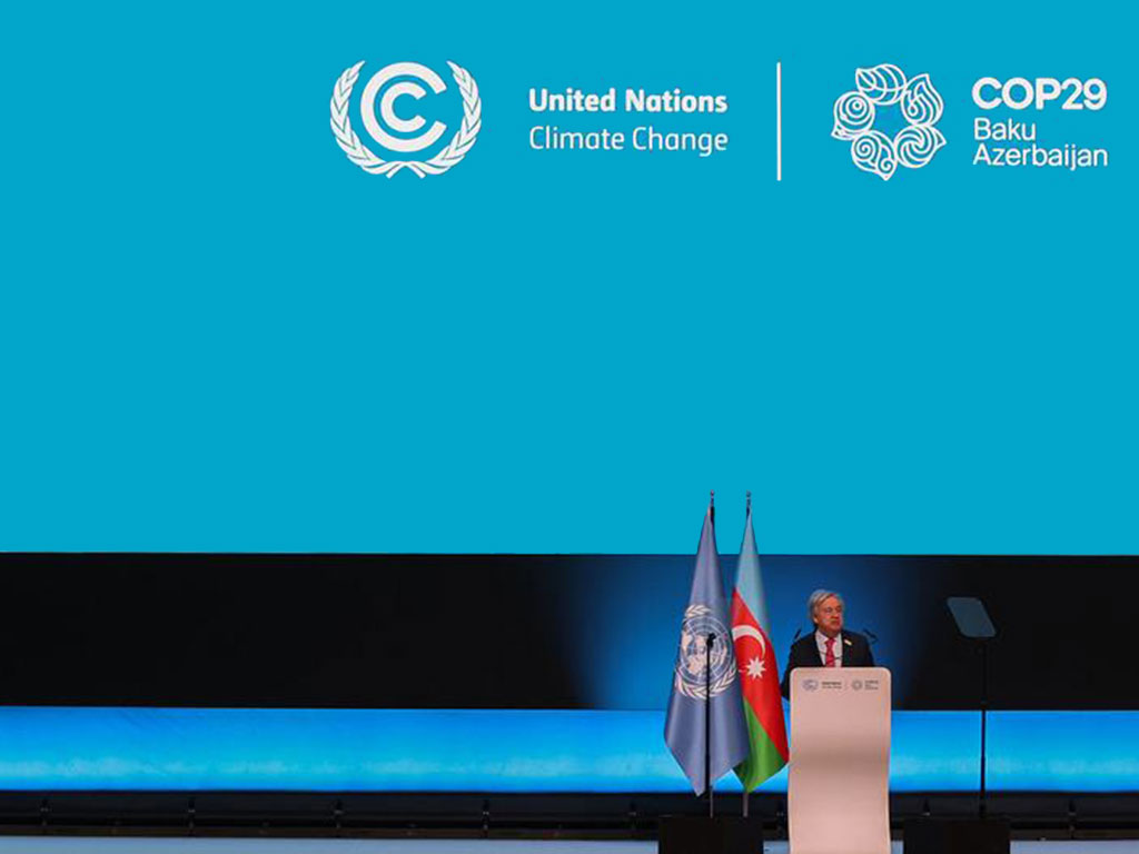 El máximo responsable de Naciones Unidas recordó que el 2024 registró temperaturas récord, marcadas además por el desastre climático, todo ello mientras las emisiones van en aumento.