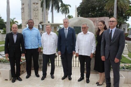 En el cementerio patrimonial Santa Ifigenia, Evgeny Grigóriev dijo que está impresionado por la forma en que los cubanos preservan su historia, “algo que deben aprender muchos países del mundo”, e hizo una fraternal invitación al gobernador de Santiago de Cuba, Manuel Falcón, a que visite su ciudad.