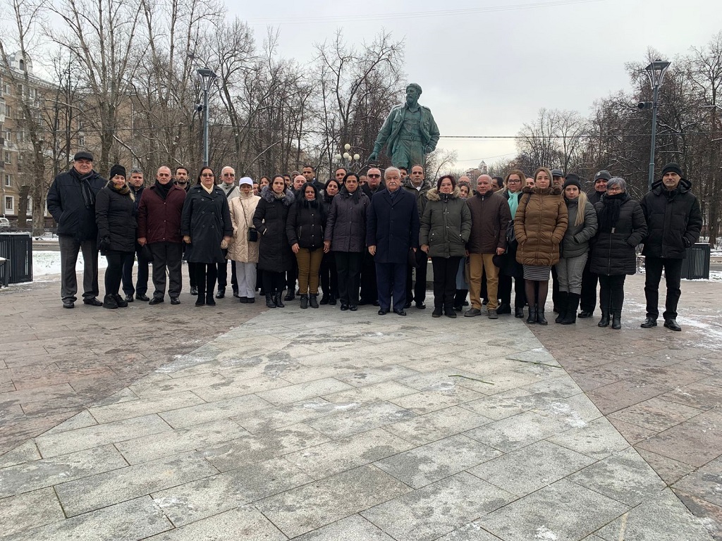 Posteriormente los diplomáticos, funcionarios, y trabajadores de las distintas misiones estatales cubanas en la Federación de Rusia rindieron homenaje y colocaron una ofrenda floral ante la estatua al insigne revolucionario cubano erigida en el distrito Sokol de la capital rusa.