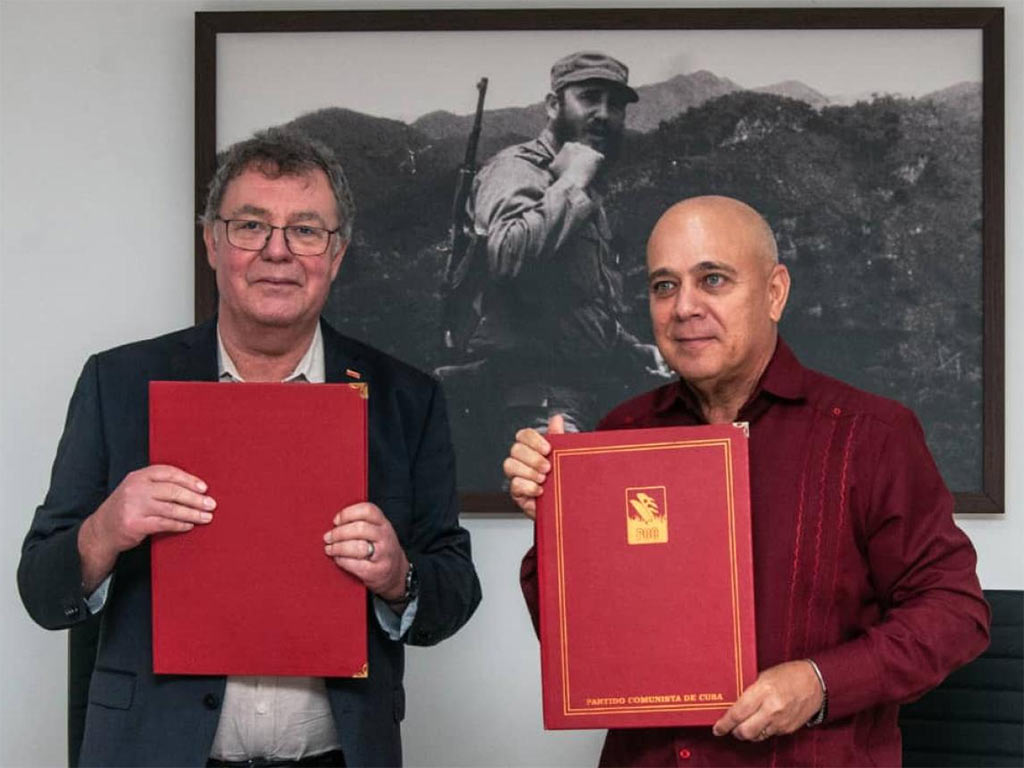El documento fue rubricado por el secretario de Organización del Partido Comunista de Cuba, Roberto Morales Ojeda, y el presidente del Partido Comunista Alemán, Patrik Köbele, quien realiza una visita a la isla al frente de una delegación.