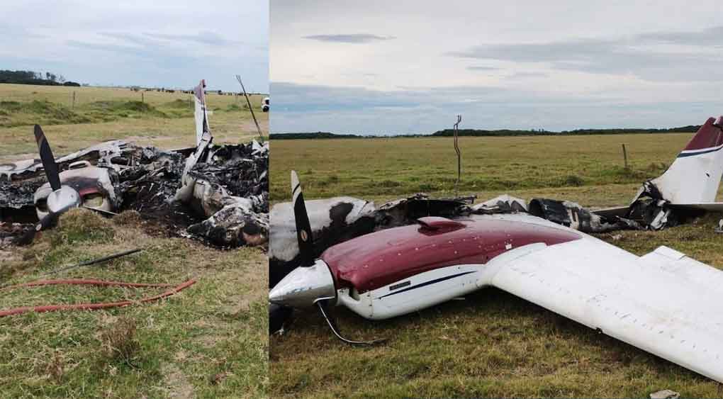 Al llegar al lugar tanto la policía como el personal de la FAU encontraron los restos calcinadosde la aeronave, pero sin rastros de su tripulación.