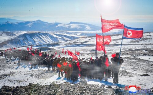 En la cima del Paektu, los caravanistas proclamaron la decisión de continuar preparándose ideológicamente para estar a la altura del monte, el más alto de la península de Corea con dos mil 744 metros sobre el nivel del mar.