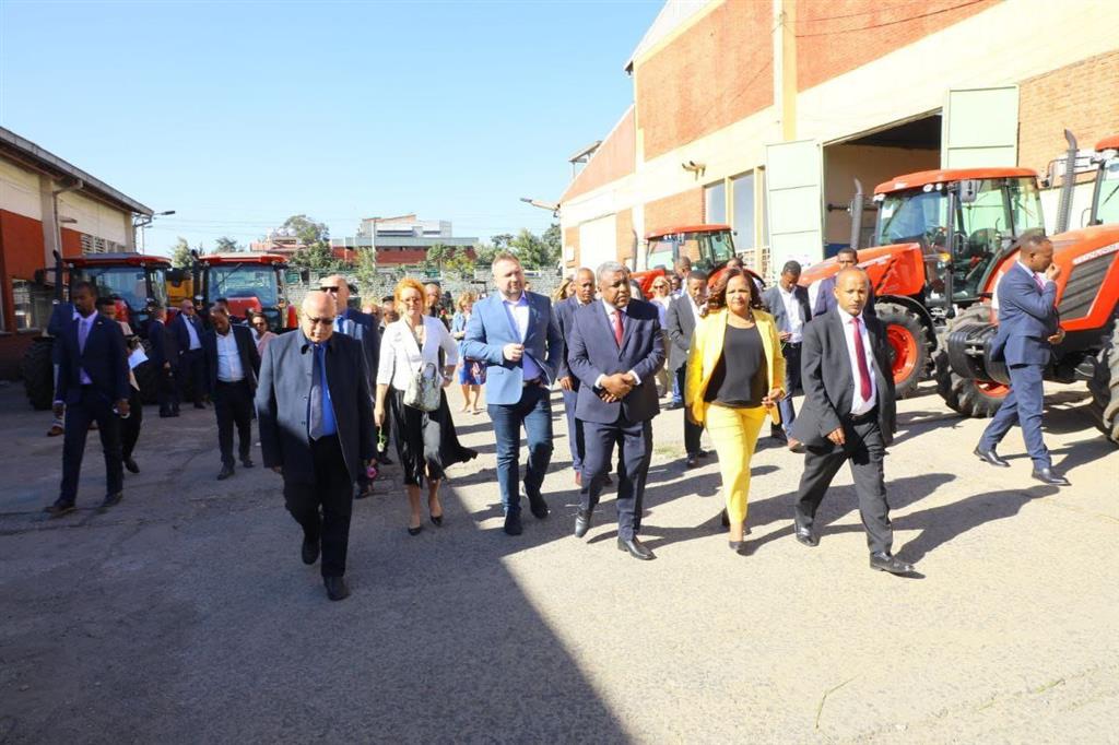 La delegación extranjera visitó los almacenes y pudo observar el equipo agrícola, los tractores y los centros de ensamblaje de la Corporación de Negocios Agrícolas etíope.