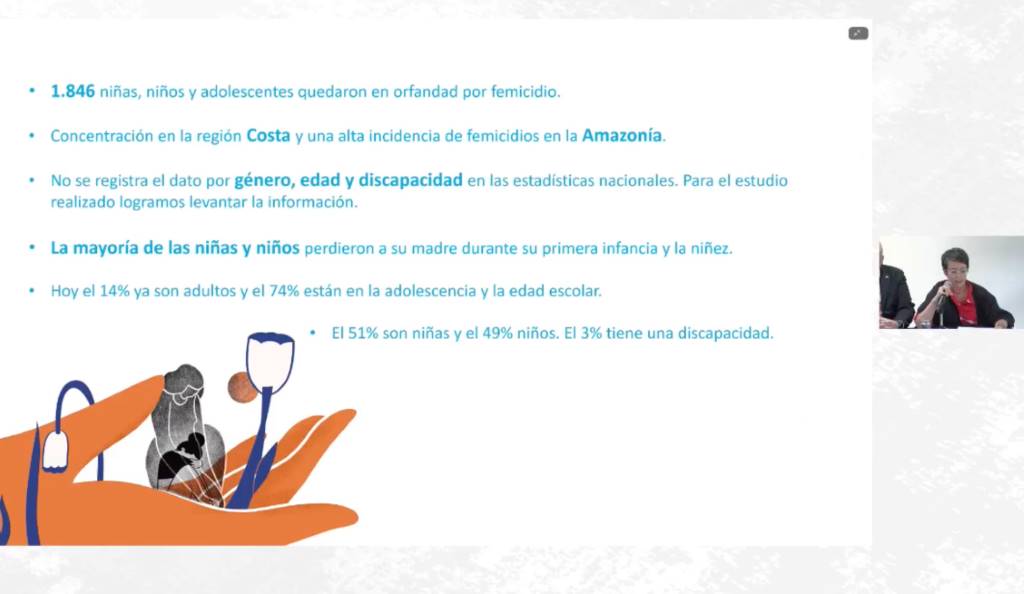 Insistió en la necesidad de protección y reparación integral urgente para esos menores, cuya vida se trastoca por completo, pues no solo sufren la pérdida de su cuidadora, también la posible ausencia del padre cuando este es el femicida.