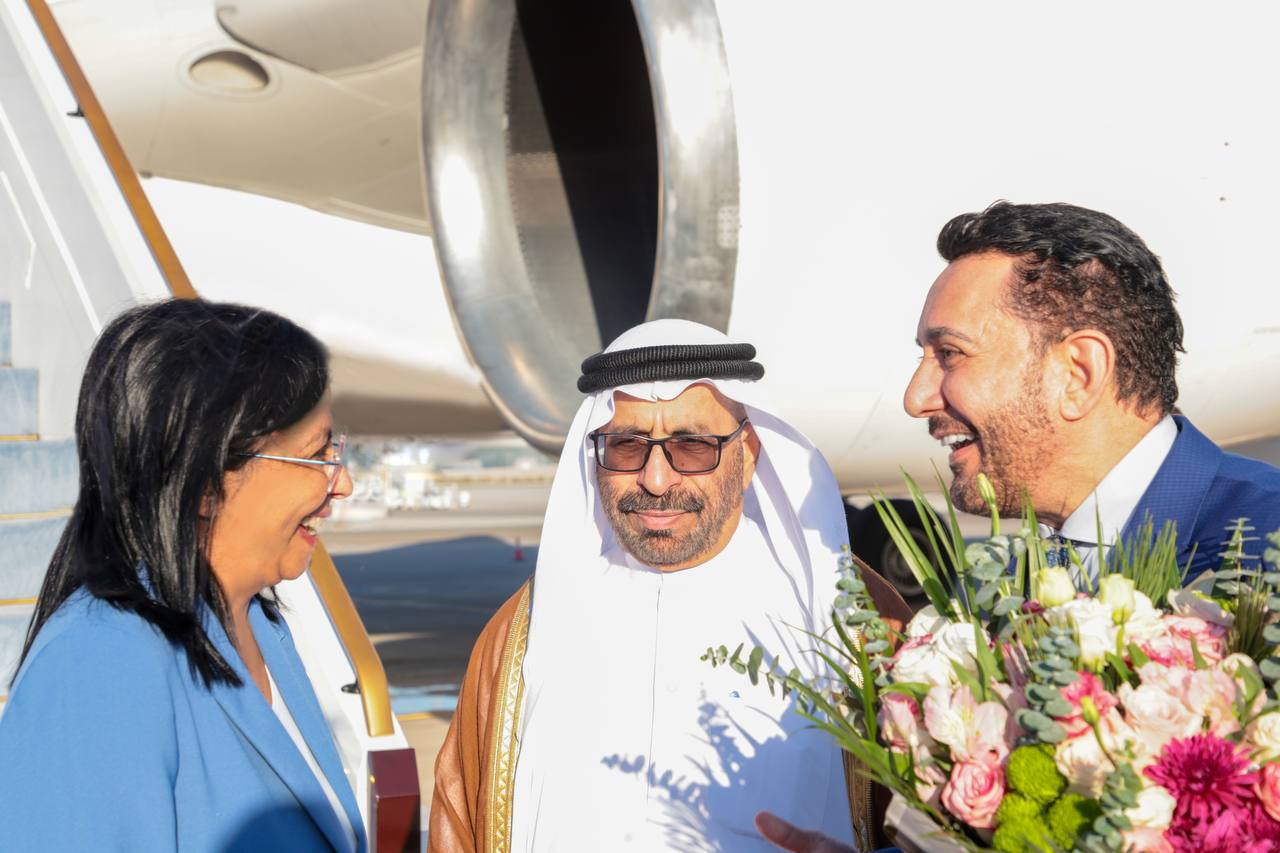 El embajador de Caracas en esta capital, Nabil Abdul Khalek, dio la bienvenida a la vicemandataria en el aeropuerto internacional, junto a otras autoridades.