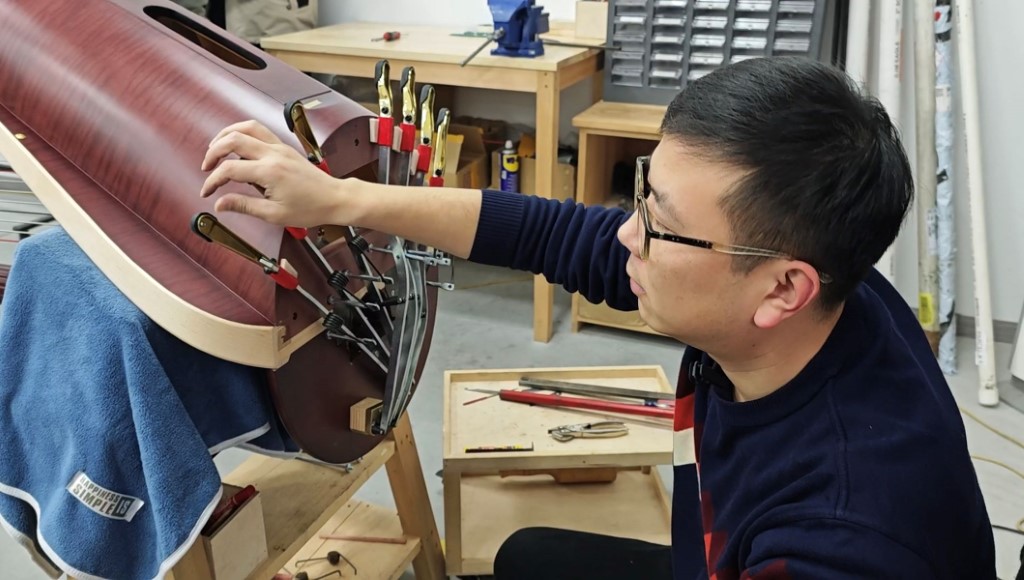 Quan Jiaxin, ingeniero especializado en la fabricación de estos instrumentos con casi una década en esta industria, subrayó la importancia del trabajo manual en la elaboración de arpas.