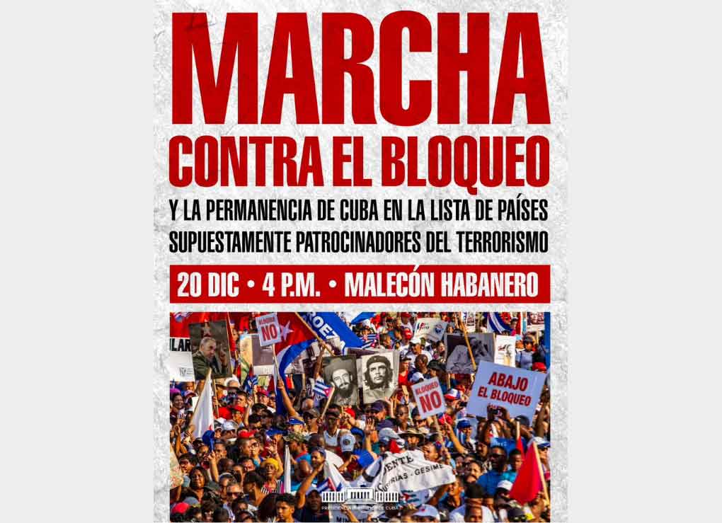 Un mensaje divulgado en X por el mandatario, asevera que este 20 de diciembre, “junto al heroico pueblo cubano, saldremos en marcha combatiente para exigir el fin del bloqueo y la permanencia de #Cuba en la ilegítima lista de países supuestamente patrocinadores del terrorismo.”
