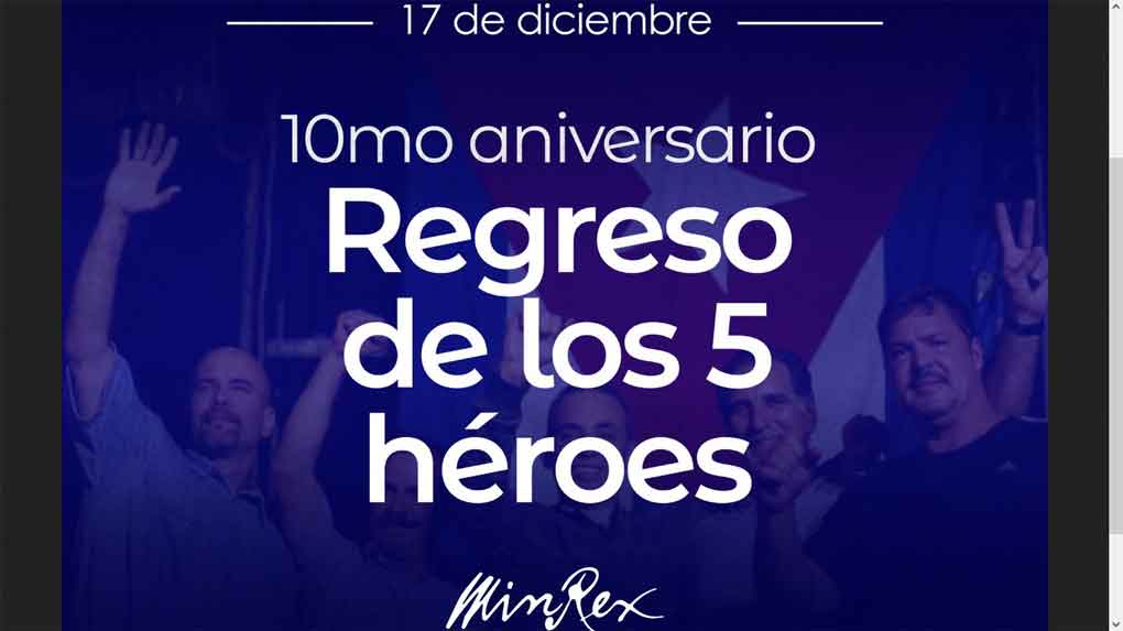 De igual modo, instituciones como los ministerios de Transporte y de Finanzas y Precios se unieron a la celebración reproduciendo las palabras de Fidel Castro: «Nuestros héroes tendrán que ser liberados. La enorme injusticia cometida contra ellos será conocida por el mundo entero… ¡Nuestros compañeros, más temprano que tarde, volverán!»