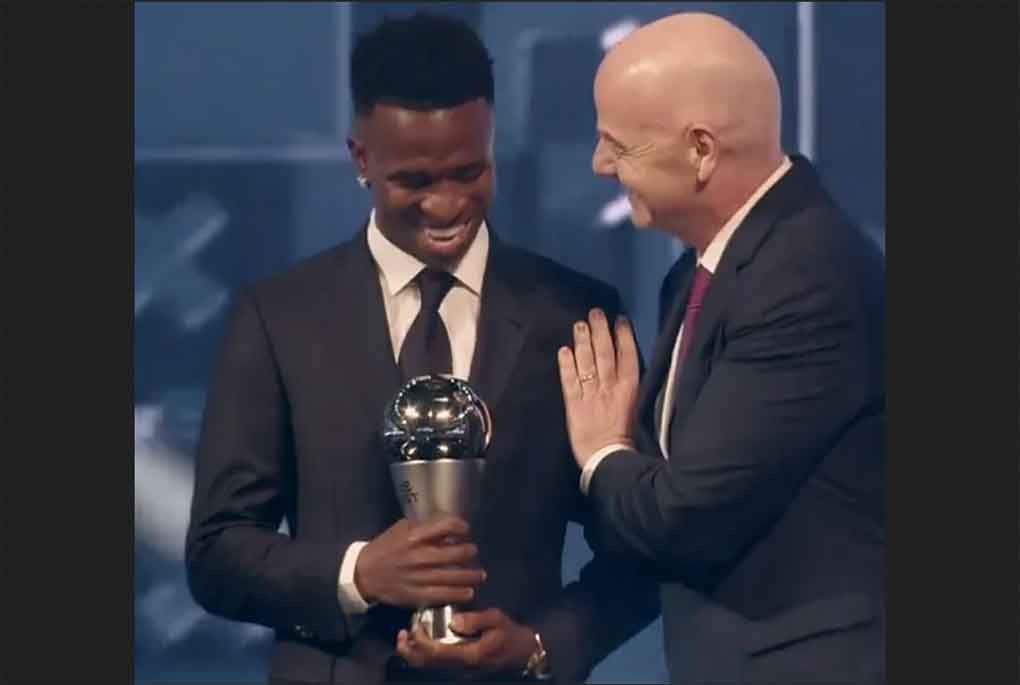 Vinicius pudo recibir el premio de forma presencial porque el conjunto merengue jugará mañana aquí la final de la Copa Intercontinental de Clubes.