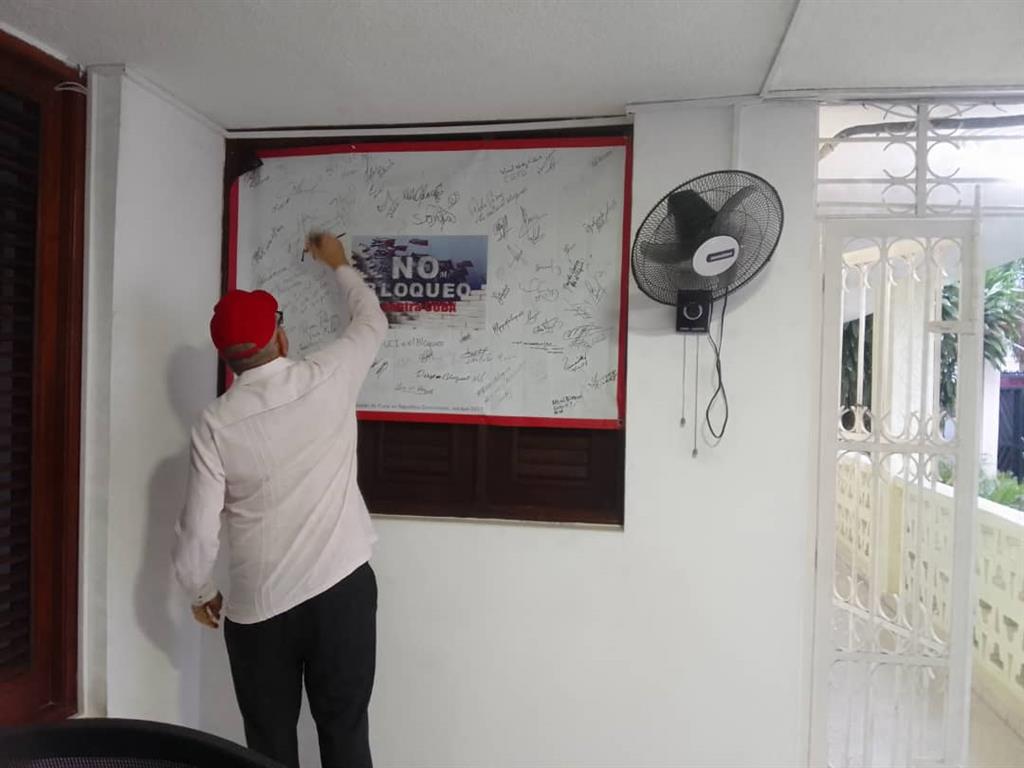 En un acto en la embajada de Cuba en esta capital, que contó con la presencia del secretario general del Partido Comunista del Trabajo, Manuel Salazar, y miembros de su organización, los cubanos exigieron el fin del bloqueo económico, comercial y financiero de Estados Unidos, que tanto daño hace al desarrollo y a las familias.