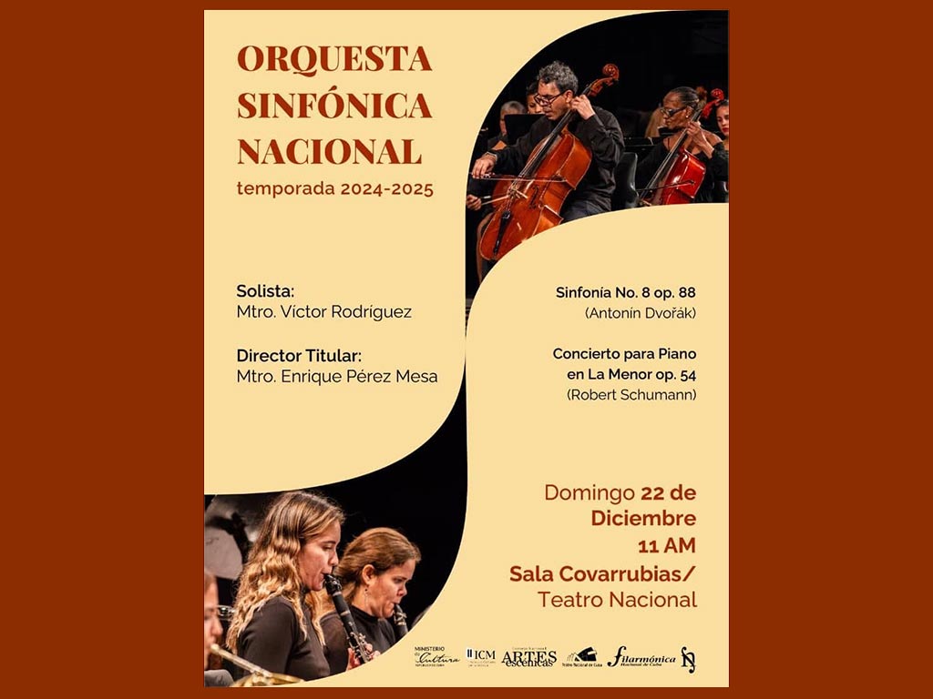 Bajo la conducción del Maestro Enrique Pérez Mesa, la orquesta y su solista invitado interpretarán a las 11:00, hora local, de este domingo, la Sinfonía No. 8 Op. 88, de Antonin Dvorák, y el Concierto para Piano en la menor Op. 54, de Robert Schumann, dos obras monumentales del repertorio universal.