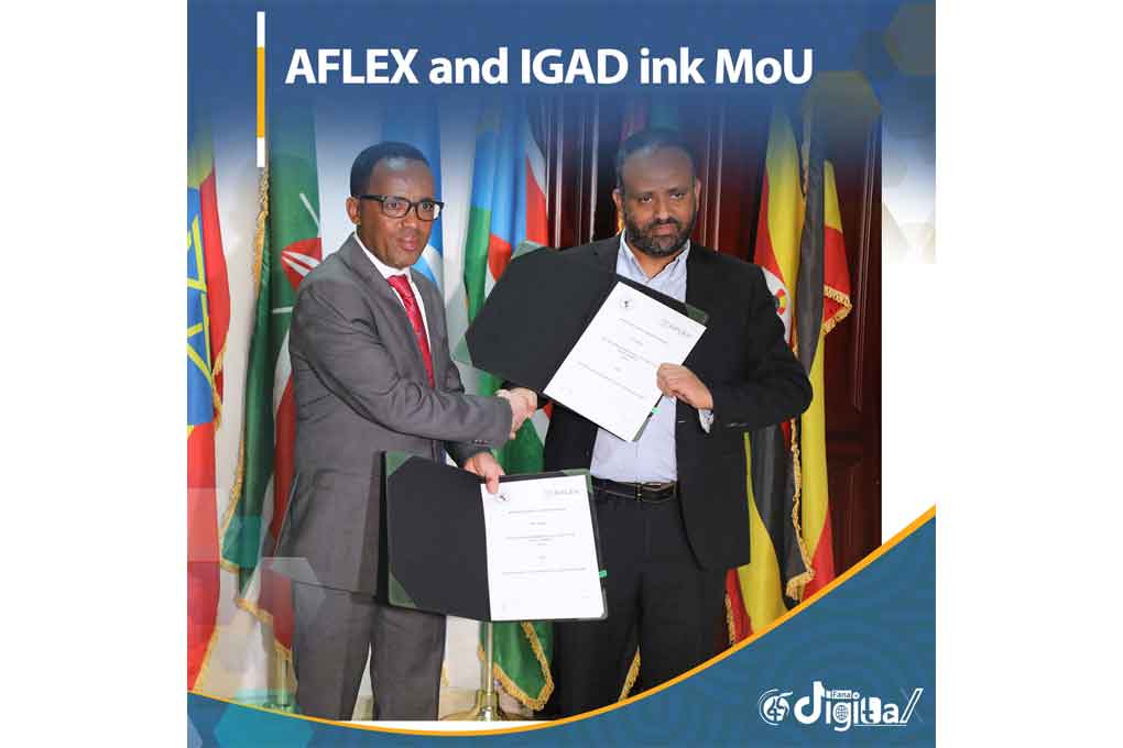 El presidente de la Aflex, Zadig Abraha, y el representante del secretario ejecutivo de la IGAD, Abebaw Bihonegn, rubricaron el acuerdo que marca una importante alianza entre las dos organizaciones.