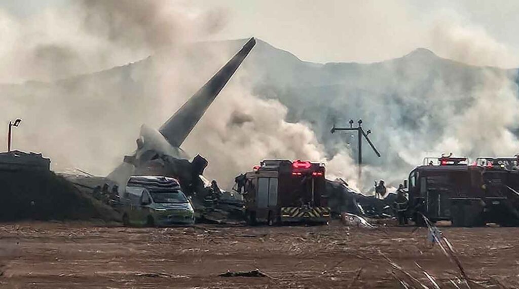 Las fotos compartidas por medios locales mostraban humo saliendo del avión perteneciente a Jeju Air.