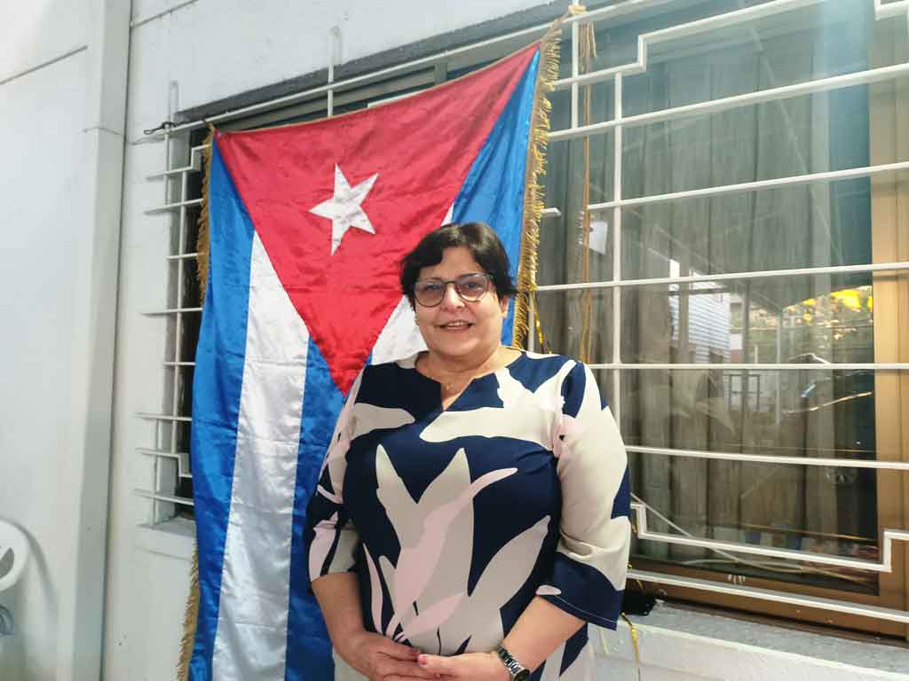 “Estamos festejando la despedida de un año y la bienvenida de otro y el triunfo revolucionario que fue también un nuevo comienzo para Cuba y que nosotros tenemos la responsabilidad histórica de defender», expresó la embajadora.