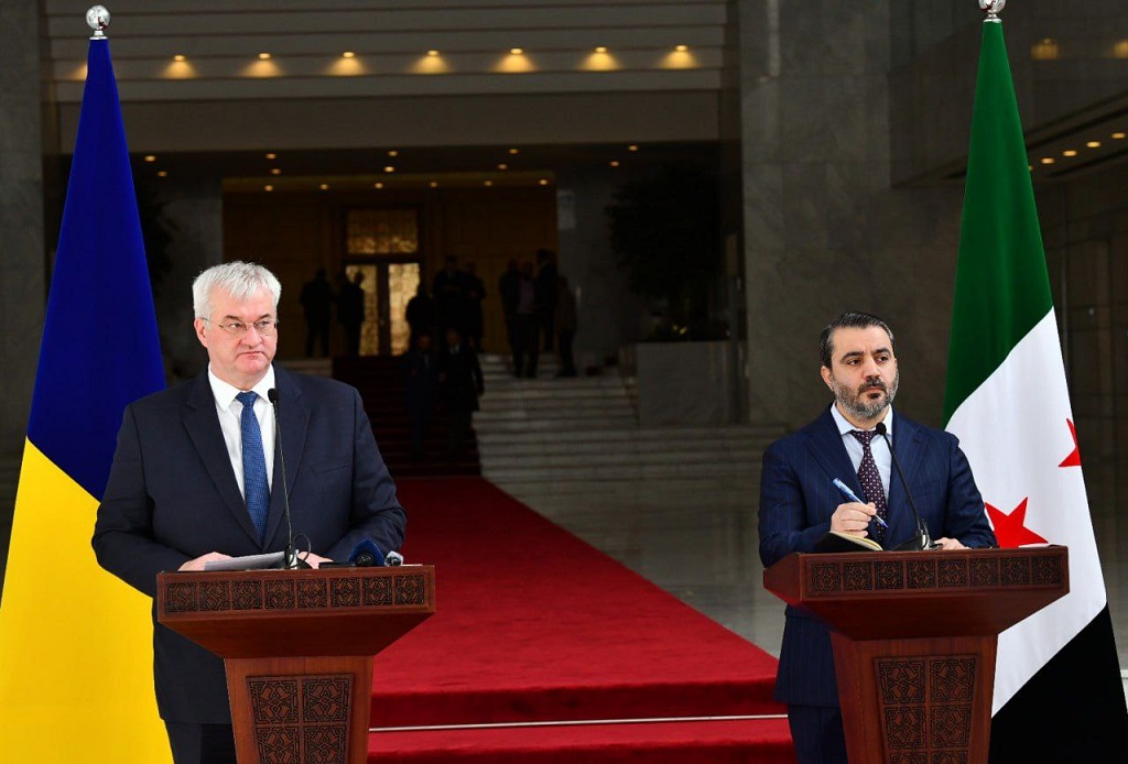 Los encuentros de la delegación de Kiev se efectuaron en el Palacio del Pueblo con el jefe de la nueva administración, Ahmed Al-Sharaa, el ministro de Asuntos Exteriores, Asaad Al-Shaibani, y el jefe del servicio de inteligencia sirio, Anas Khattab.