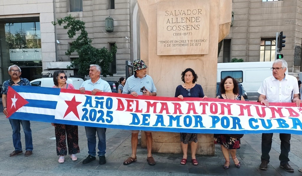 Santiago de Chile, 30 dic (Prensa Latina) Ante el monumento a Salvador Allende, en la Plaza de la Constitución, tuvo lugar hoy el lanzamiento en Chile del Maratón de Amor por Cuba, una campaña mundial que se extenderá durante todo el 2025.