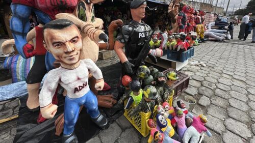 La figura del presidente, Daniel Noboa, es una de las más solicitadas, confirmó a Prensa Latina una de las comerciantes de Quito que oferta en el Parque La Carolina, en el norte de la ciudad, cientos demonigotes, hechos con papel, cartón y telas.