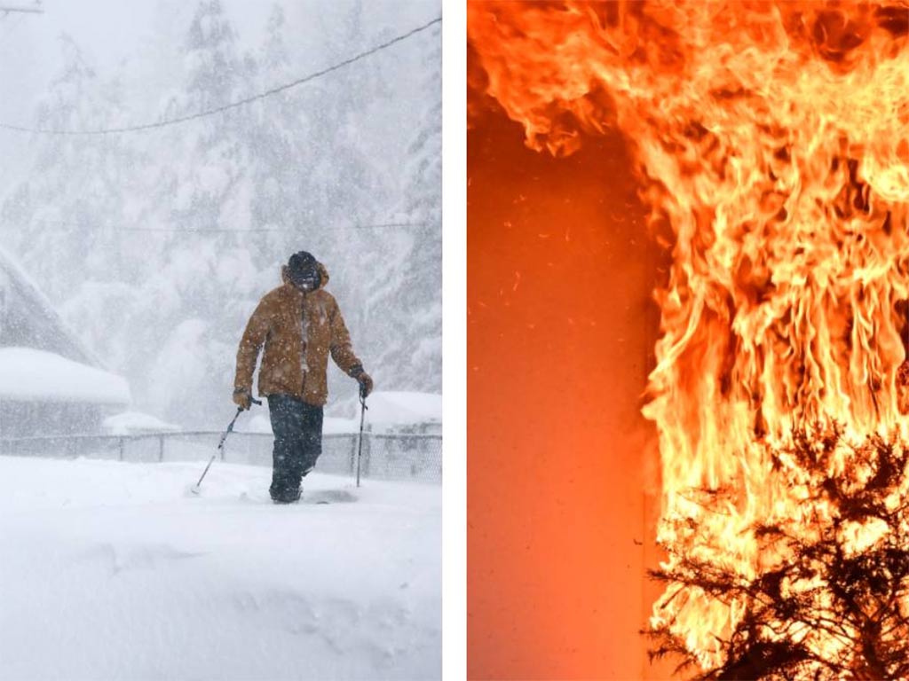 Tiritan de frío en una parte de EEUU, en otra incendios forestales